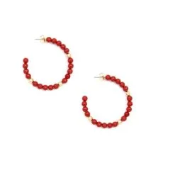 ZENZII Beaded, C-shaped Resin Hoop Earring With Accents Of Gold-tone Beads.