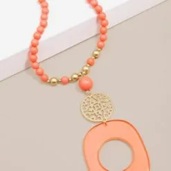ZENZII Emblem Charm And Resin Pendant Beaded Necklace Jewelry