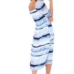This midi dress has a sophisticated square neckline but is playful with puffed short sleeves and the Distressed Stripes Print.