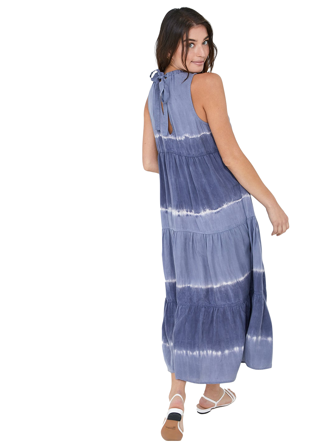 Throw on and go, this dress is an easy fit dress with a collared neck, long sleeve with roll tabs, and slightly longer back hem.