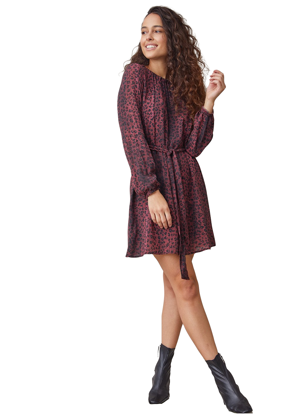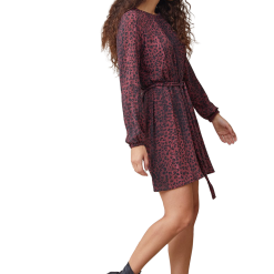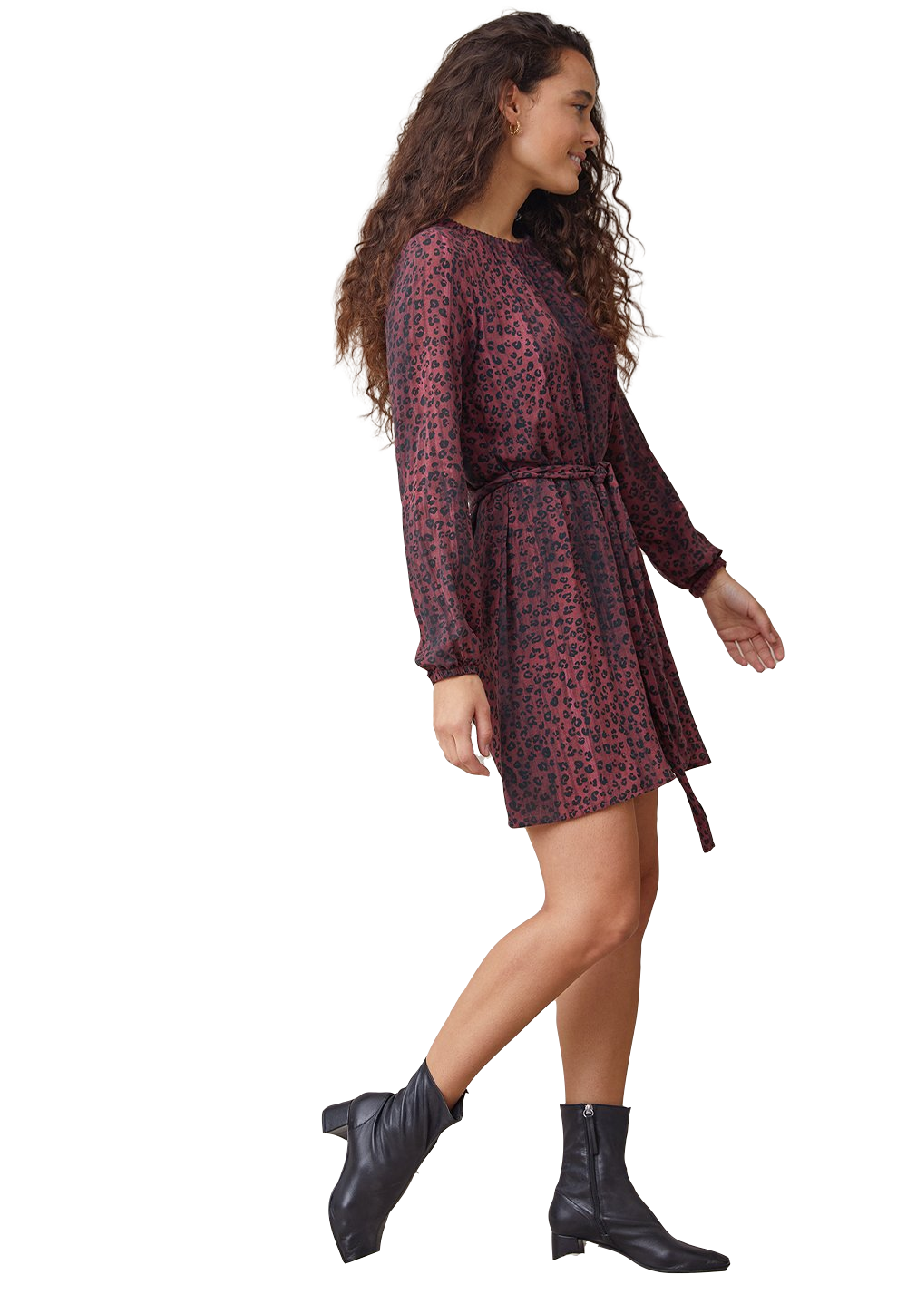 Fun and flirty. This mini dress features long sleeves with elastic cuffs and a tie waist to show off your shape.