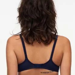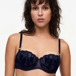 Gorgeous Marine Blue Velvet, with lush floral embroidery through the cups that are transparent and seductive, the Fleur Demi embodies softness and femininity.