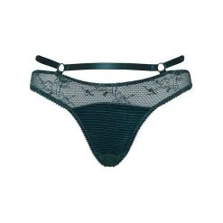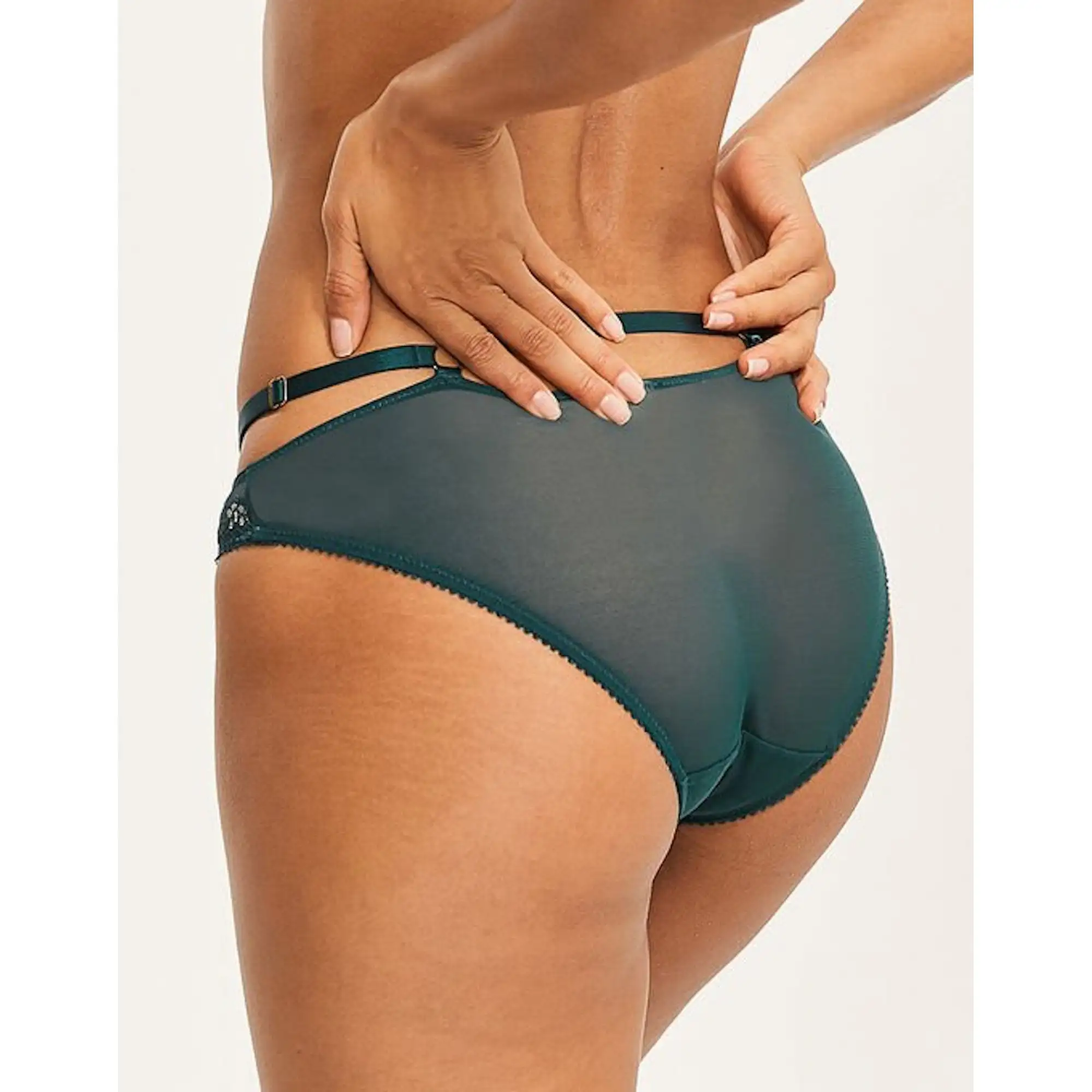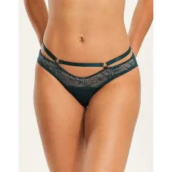 Go ahead and express your inner seductress with this detailed bikini brief, immaculate lace and scalloped trims, this bikini sensually frames the silhouette with sexy strapping for provocative boudoir style.