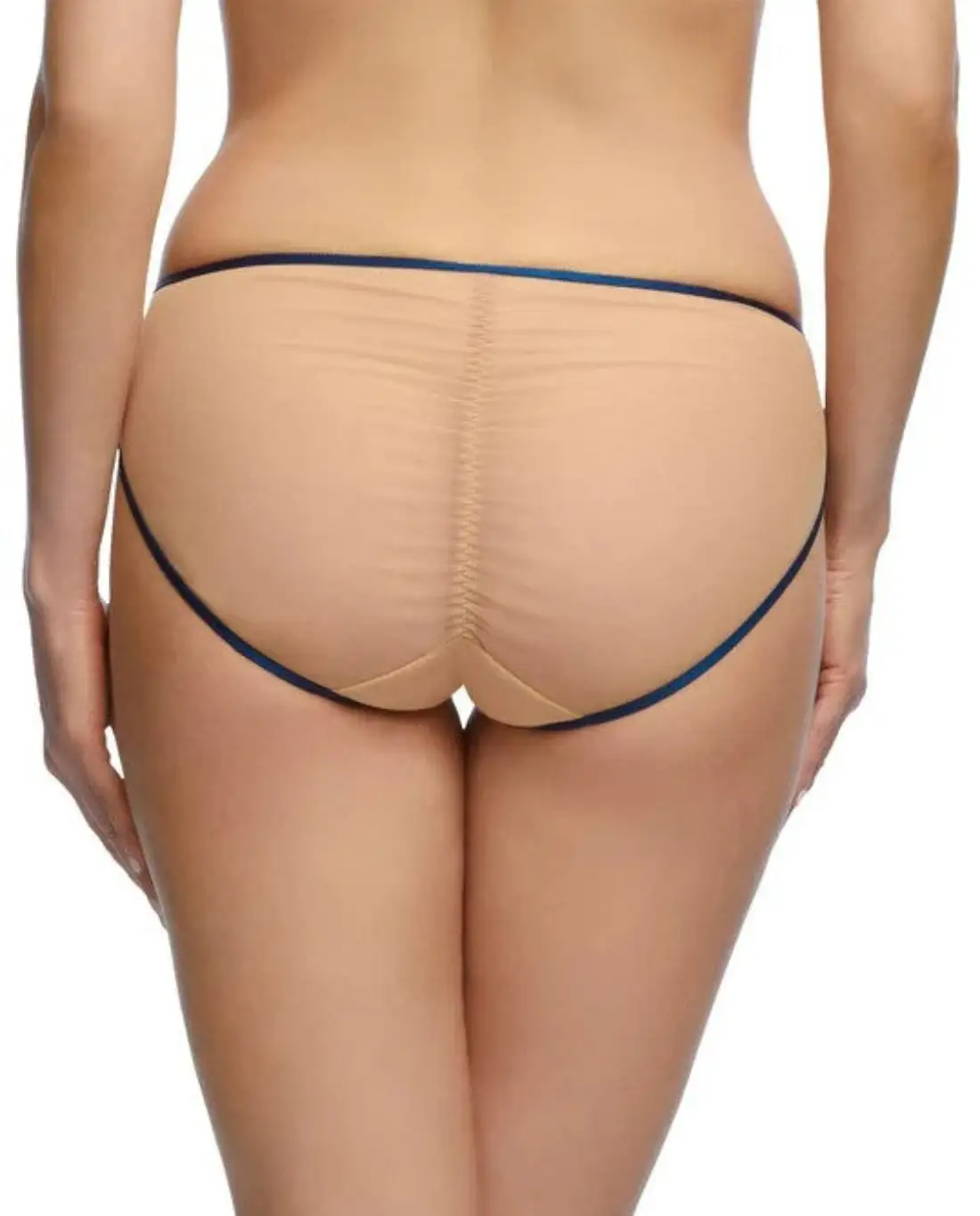 Dita created Femmoiselle combining her love of embroidered detailing on sheer tones. The two tone blue floral embroidery has lurex highlights and is delicate on the soft sheer mesh. Dita has playfully added her stiletto into the design. Can you find it? The Femmoiselle Bikini has an embroidered front and sheer mesh back with heirloom sapphire trinket.