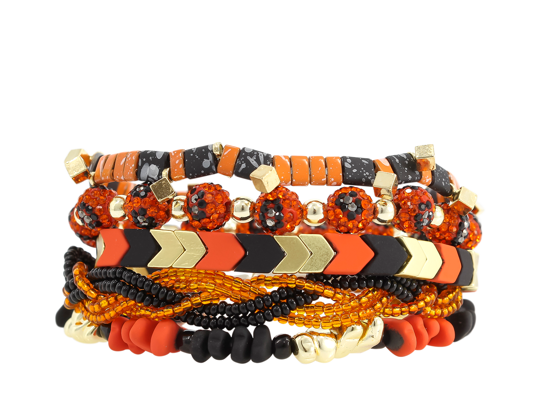 The Pete Gameday Bauble Box Stack is made up of fun orange and black pieces with sparkling shamballa beadsl!