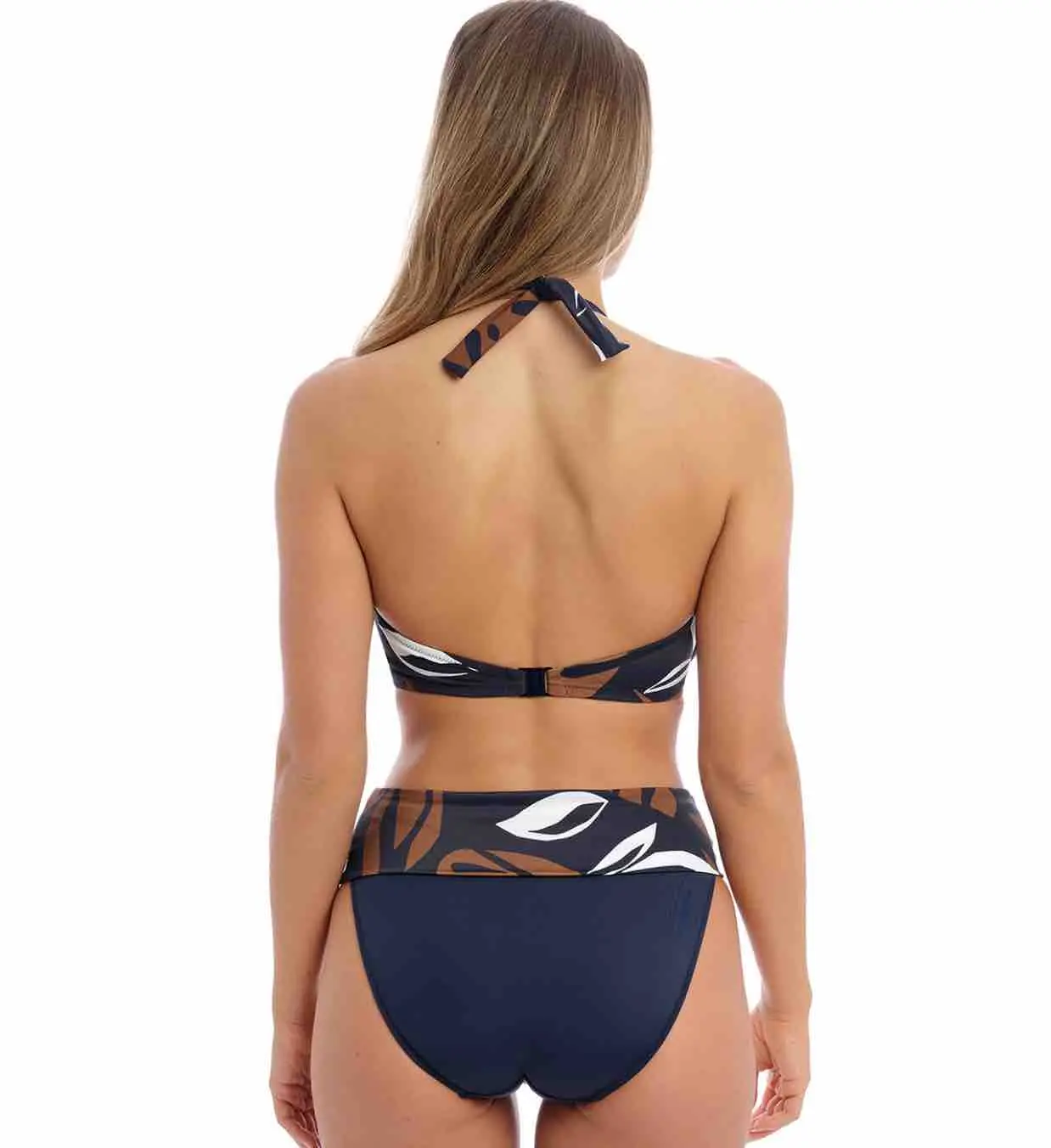 - Contrasting fold-over waistband for different levels of coverage