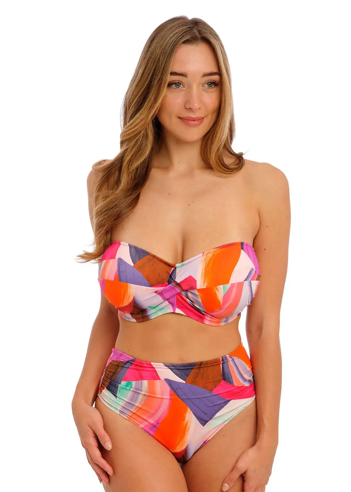 Dive into the new season with Aguada Beach. The exclusively designed watercolor print takes its inspiration from morning sunrises with its blend of blissful pinks and oranges. With wrap front styling used across all shapes, this collection is flattering for all bust sizes up to a H cup.