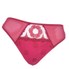 This sexy, sheer mesh tanga panty features a contrasting embroidery with swirl pattern at the center front. Covered elastic around waist for perfect fit. Two-tone streamers bow at the center back. Mid-rise fit. Delicate and feminine look. Moderate rear coverage for “cheeky” look. Sewn-in cotton gusset.