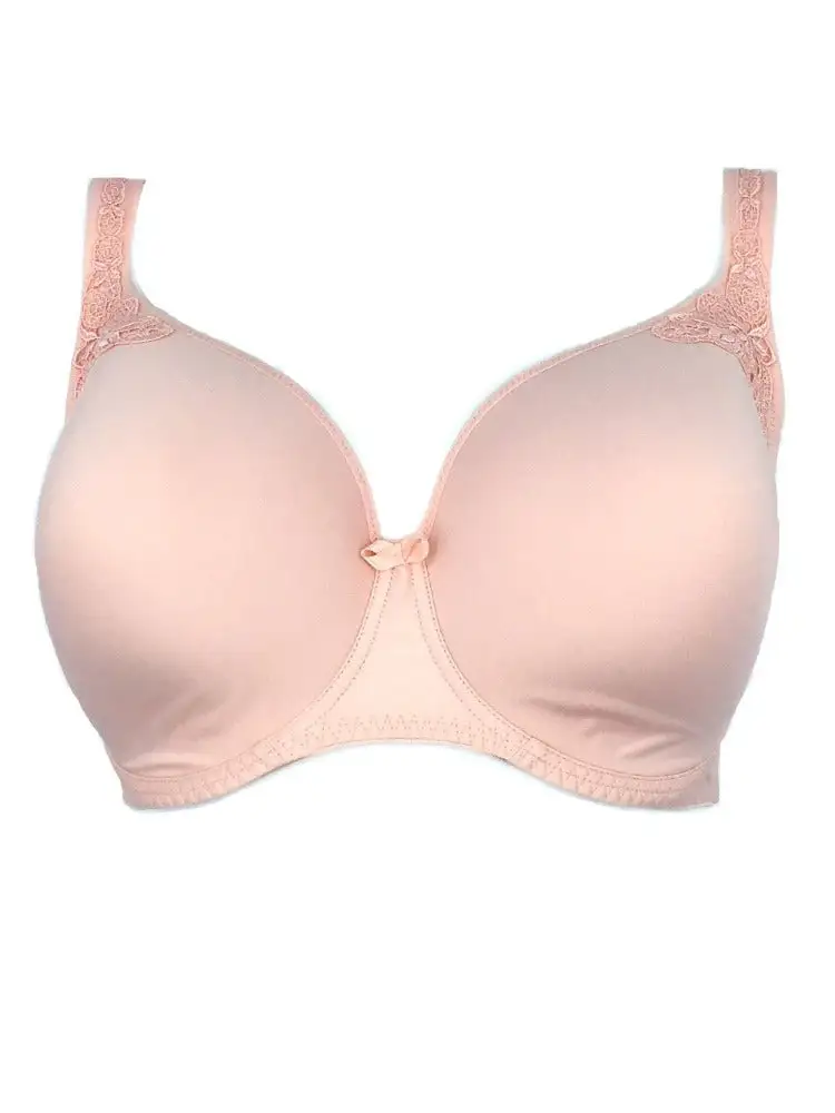Beauty has not been forgotten. The straps have delicate embroidered detail which adds a beautiful look without compromising the fit and comfort. The cups dip lower at the center so you can wear your favorite V-neck outfits without worrying that you are going to spill out. The support is incredible. The cups give a little bit of cleavage lift.