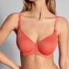 - 3-part underwire cup is unlined at bottom with Mesh Lining at back of lace panel and is free of padding and removable padding. A lightly padded support sling is added to sizes G-J.