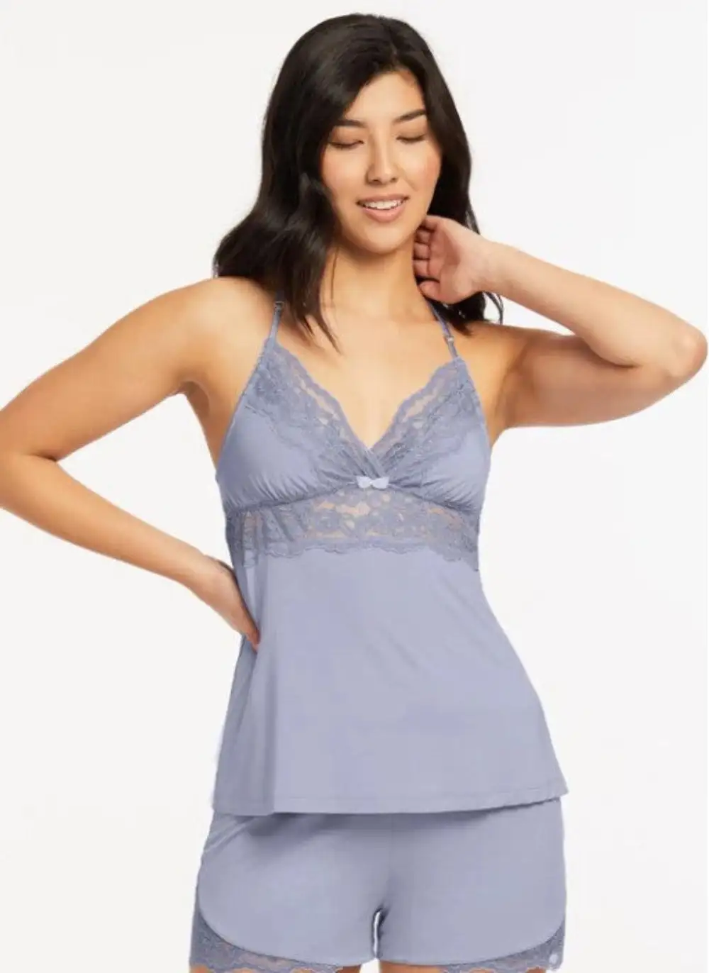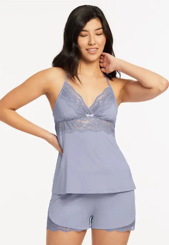 Stun in this Cami and Short Set. Sink into effortless comfort thanks to the style’s cloud-soft and eco-friendly TENCEL™ Modal fabric and fall in love with the look’s shimmery, oh-so-feminine lace accents.
