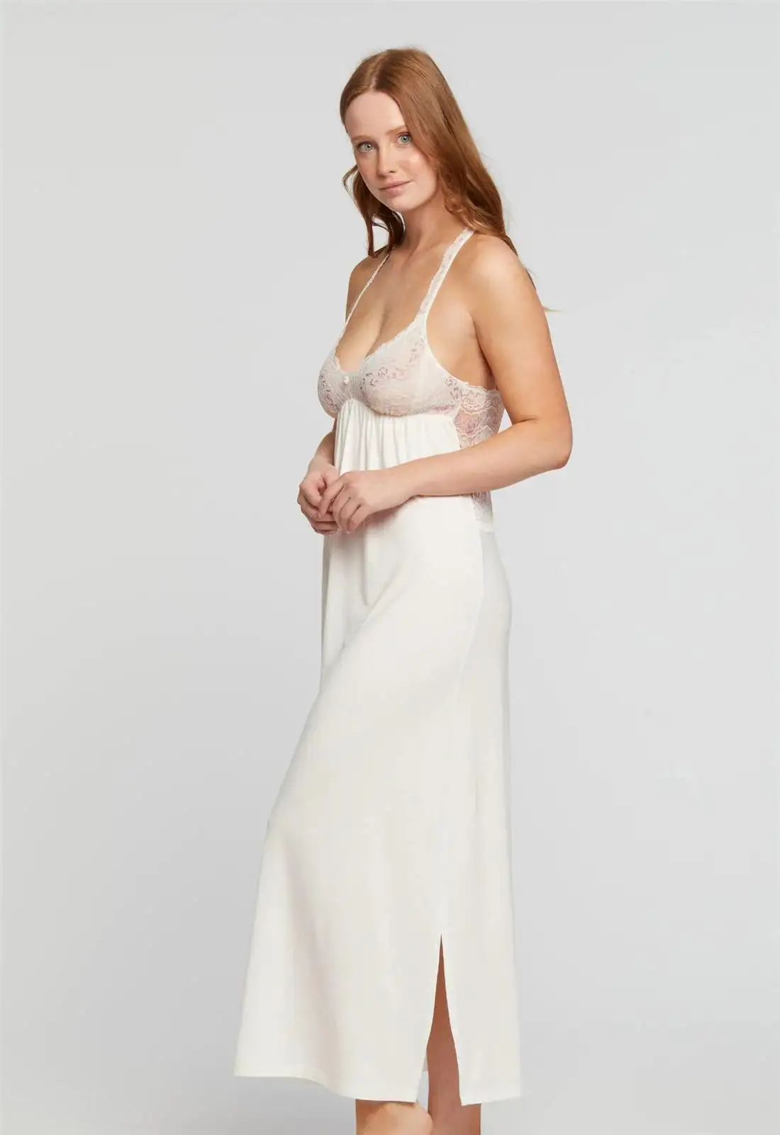 Get ready on your wedding morning wearing this cloud-soft and delicate lace gown. Featuring a breath-taking open back design and light bust support.