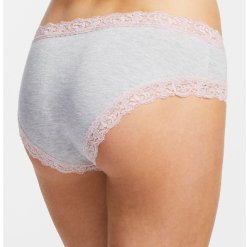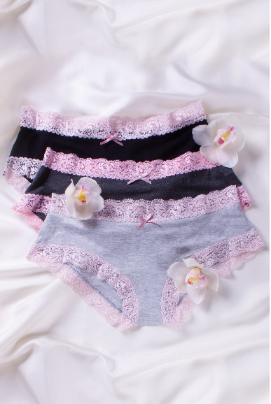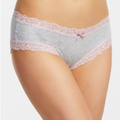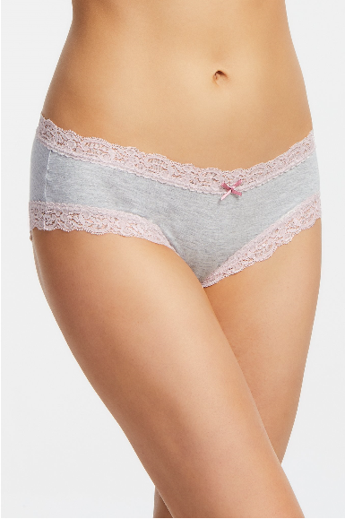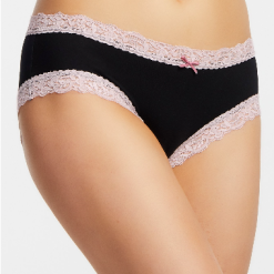 Our beloved Iconic Fleur’t Boyshort has been created in Black, Charcoal and Heather Grey with a delicate light pink lace trim and contrasting pink bow. Perfect for gift-giving or self-giving, it comes in a sweet mesh bag with a SilkChic ribbon.