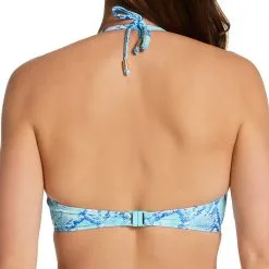 Freya AS4004 Underwire bikini swim top features a charming snake-inspired print. Dual halter ties have goldtone metal beads. Made of nylon and spandex.