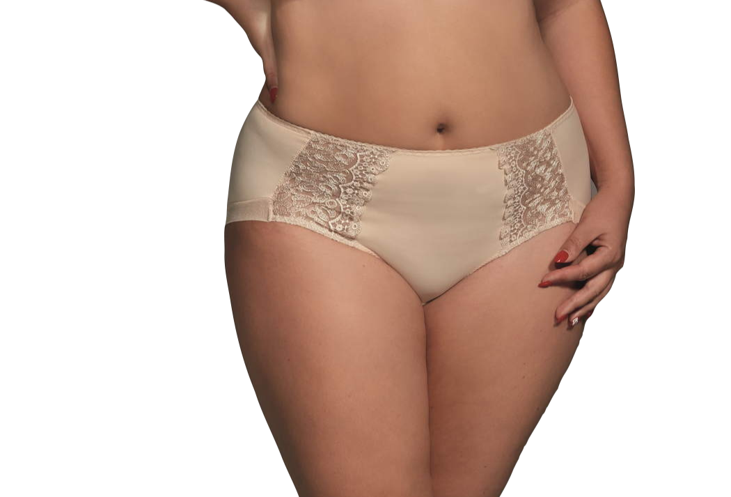 Betty Briefs midi are high-rise briefs with lace detail. Pair it with kris Line Betty collection bras.Â