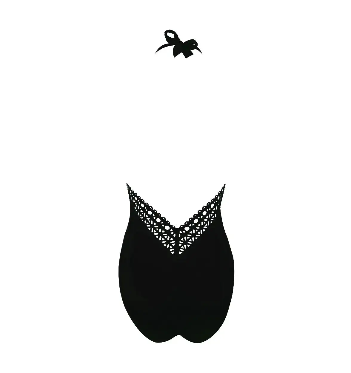 Swimsuit an original piece tied around the neck. This shape draws and sublimates the silhouette with seduction. Beautiful neckline and back plunging to the hollow of the kidneys, sublimated by a lace band.Â