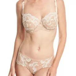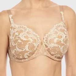 Breathtakingly beautiful guipure lace gives this underwire bra a lavish look, and it’s also amazingly supportive – with cup seaming that shapes your bust. Restrictive stretch elastic straps help prevent “bounce.”