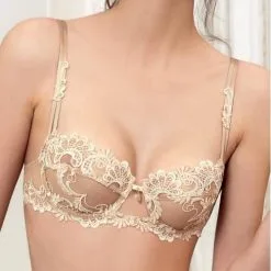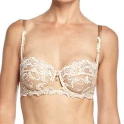 - See-through, sexy demi cup is fashioned from Guipure lace for an elegant touch.