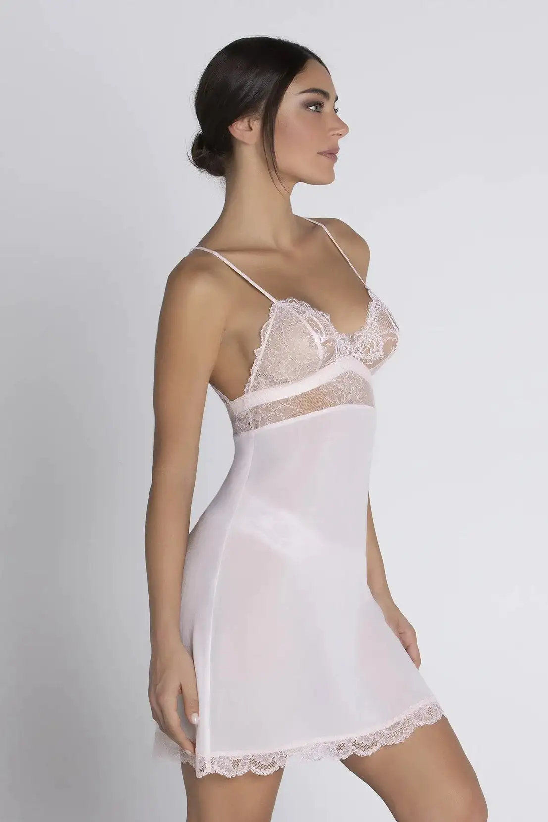 Sexy silk nighty from the Sublime en Dentelle luxury lingerie collection in rose sublime colourway by french lingerie brand Lise Charmel.