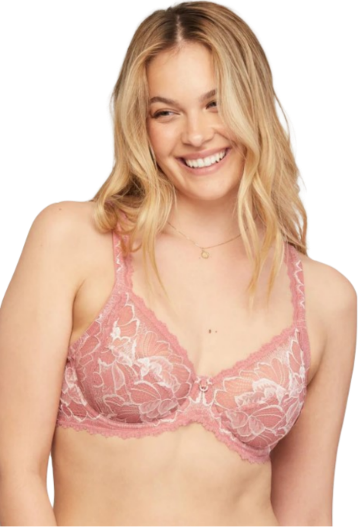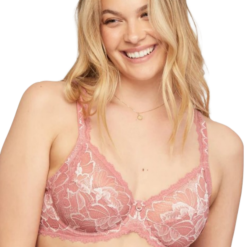 Our beloved Muse bra, now in a romantic rose clay shade. Savor this beautiful lace rosé and enjoy the same full coverage with its 4-part cup. Lined with supportive power mesh for extra lift and comfort. Detailed with a double pleat bow and half-ring charm.