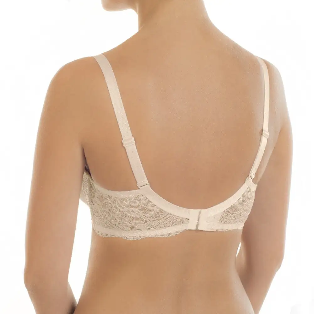 One of top selling Nikol Djumon bras in Nude color – breathable t-shirt bra with delicate lace band. Pair it with Nikol Djumon Nude Victoria String shorts or briefs
