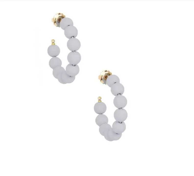 Small, c-shaped hoop earring embellished with matte resin beads.