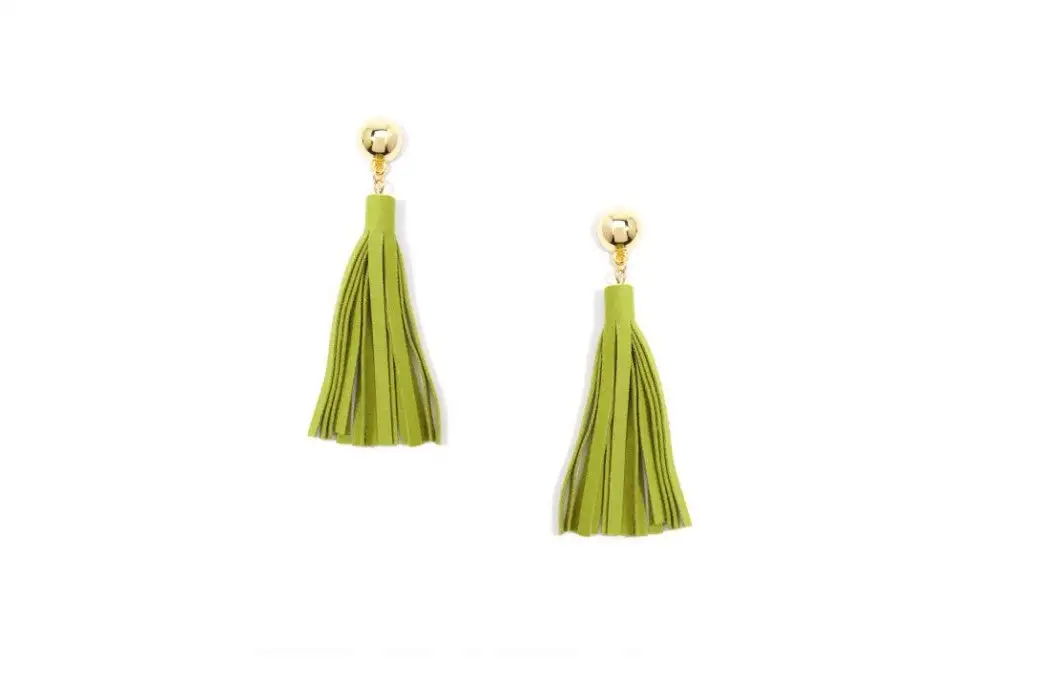 Small, shiny circle with long suede vegan tassel